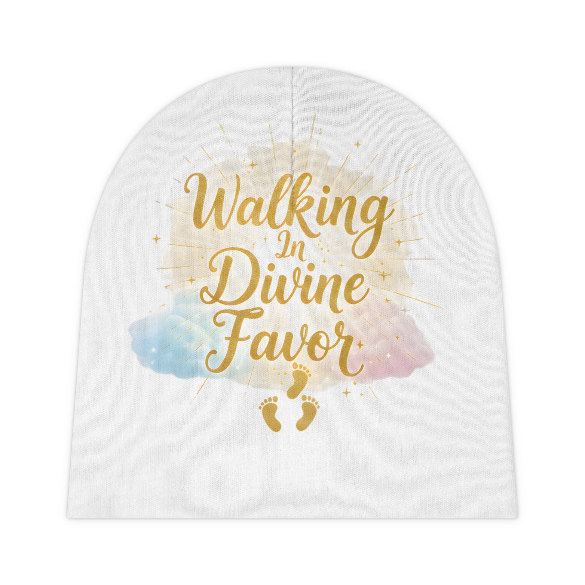 Baby Beanie — "Walking In Divine Favor" Gold Script Newborn Hat