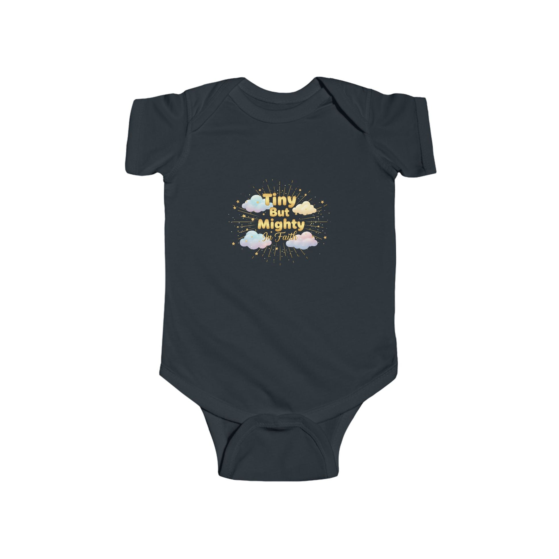 Our “Tiny But Mighty In Faith” Infant Bodysuit is a joyful declaration that even the smallest hearts can carry powerful faith. Designed to celebrate the spiritual strength, purpose, and destiny placed within your little one, this piece blends encouragement with adorable charm.