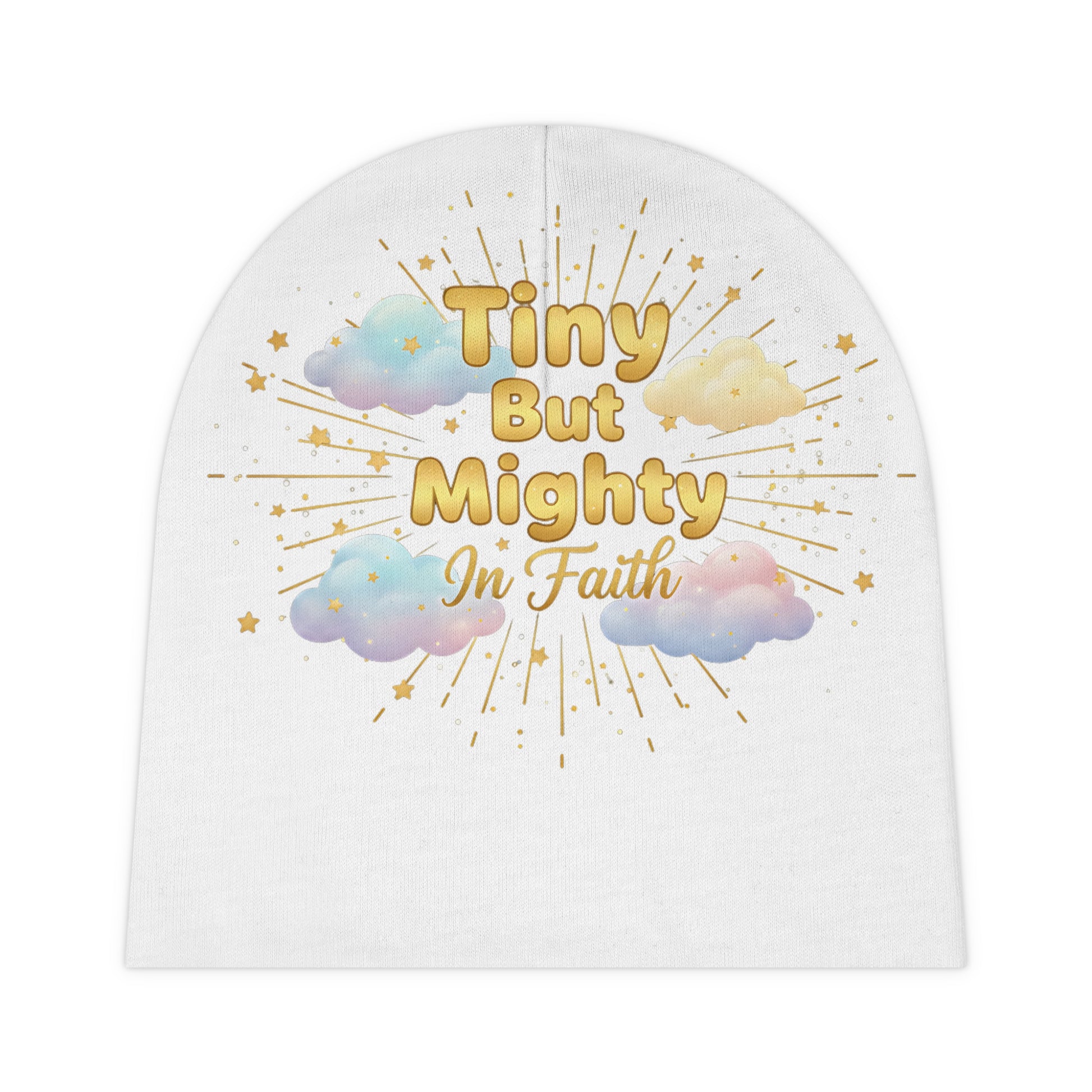 Tiny But Mighty In Faith Baby Beanie – Cute Pastel Cloud Infant Hat